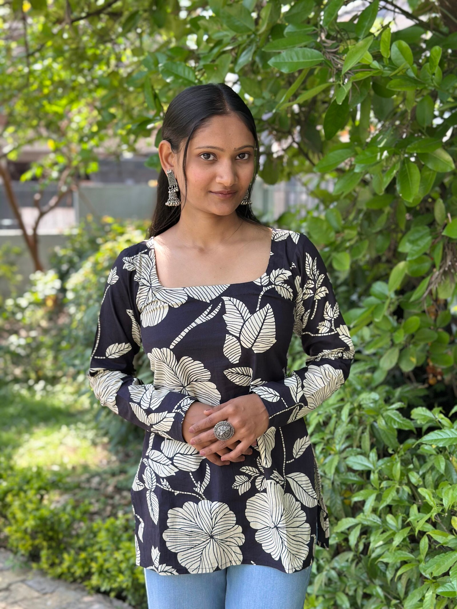 Midnight Bloom Square Neck Kurti